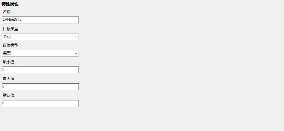 | 默认值 | 属性的默认值,选择枚举时为选择框,其他为输入框。 |