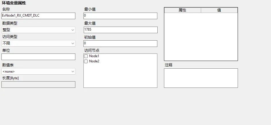 特性用于对信号,报文,节点,数据库以及环境变量等绑定额外的属性,其可编辑的属性字段和说明如下。
