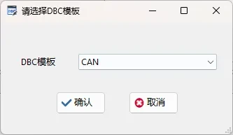 步骤2:选择数据库模板。在弹出的DBC模板选择框中,选择需要创建的DBC数据类型,支持CAN,CANFD,J1939,然后点击【确认】。
