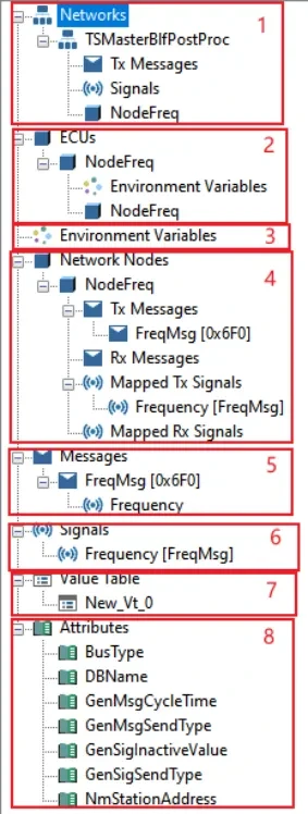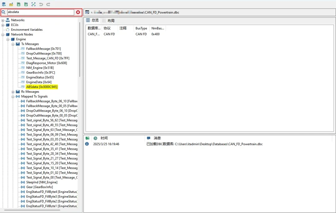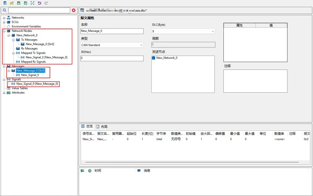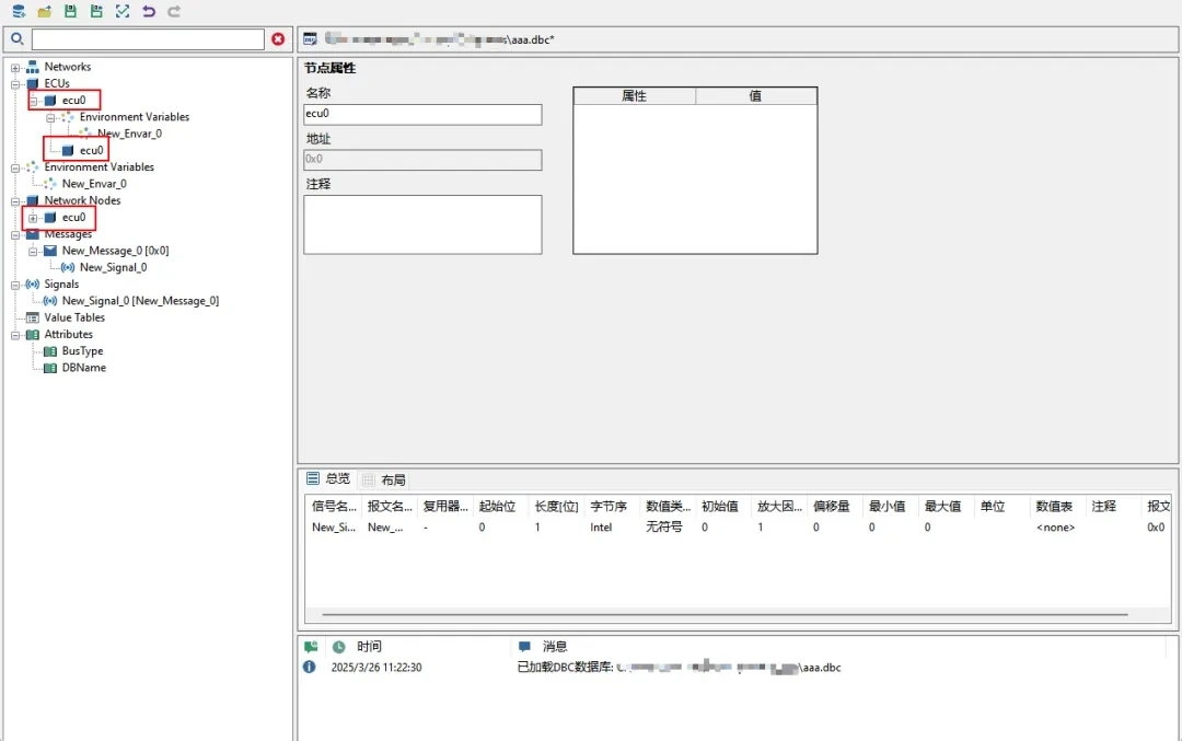- 打开CAN DBC文件,查看数据库中的节点、报文、信号、属性等信息