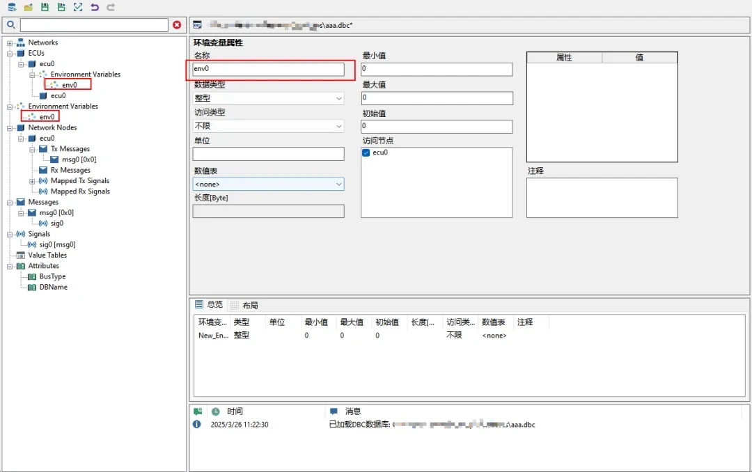 步骤2:修改CAN节点,报文、信号以及环境变量名称。