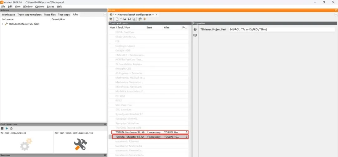 (3)“TOSUN: TSMaster SIL Kit”->“Add tool”
