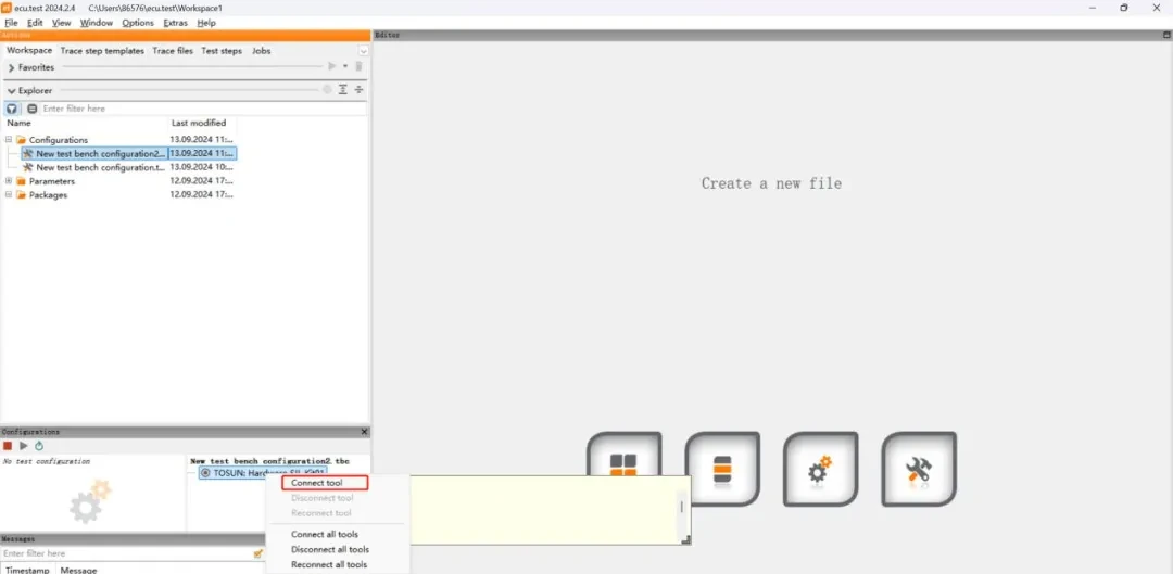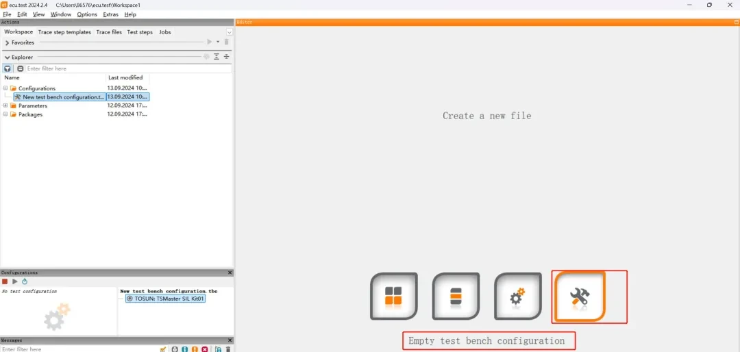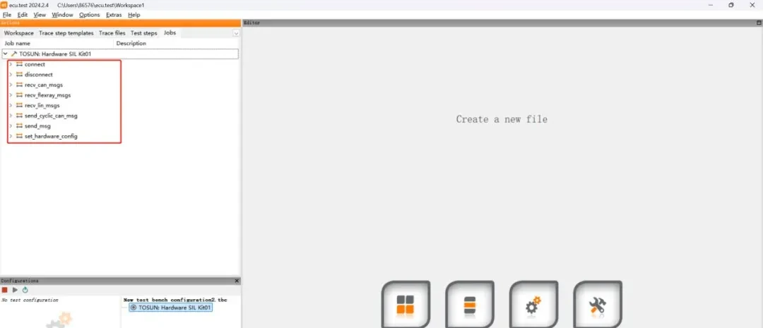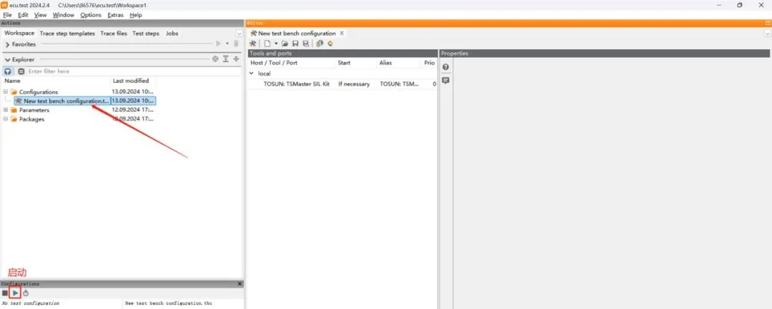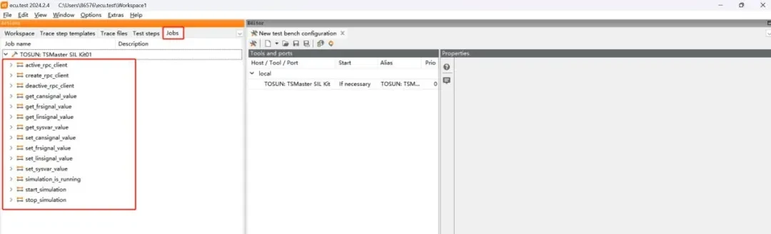 首先创建“test bench configruation”->“new create new tool host”->”Local”;此时就可以在 tool host 窗口中查看到“TOSUN: TSMaster SIL Kit”。